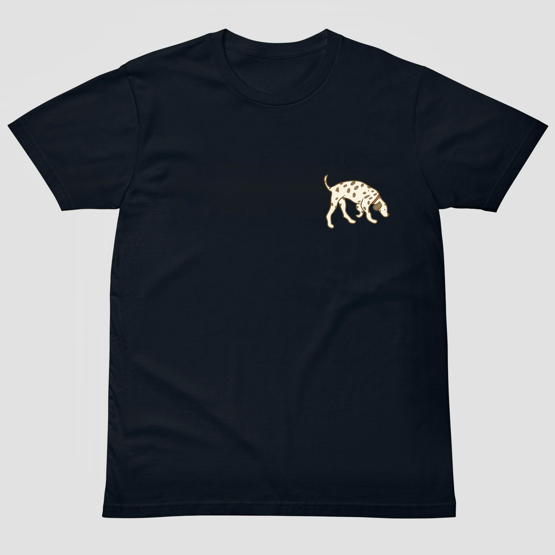 正面には、鼻をクンクンさせながら歩くダルメシアンのワンポイントイラスト。