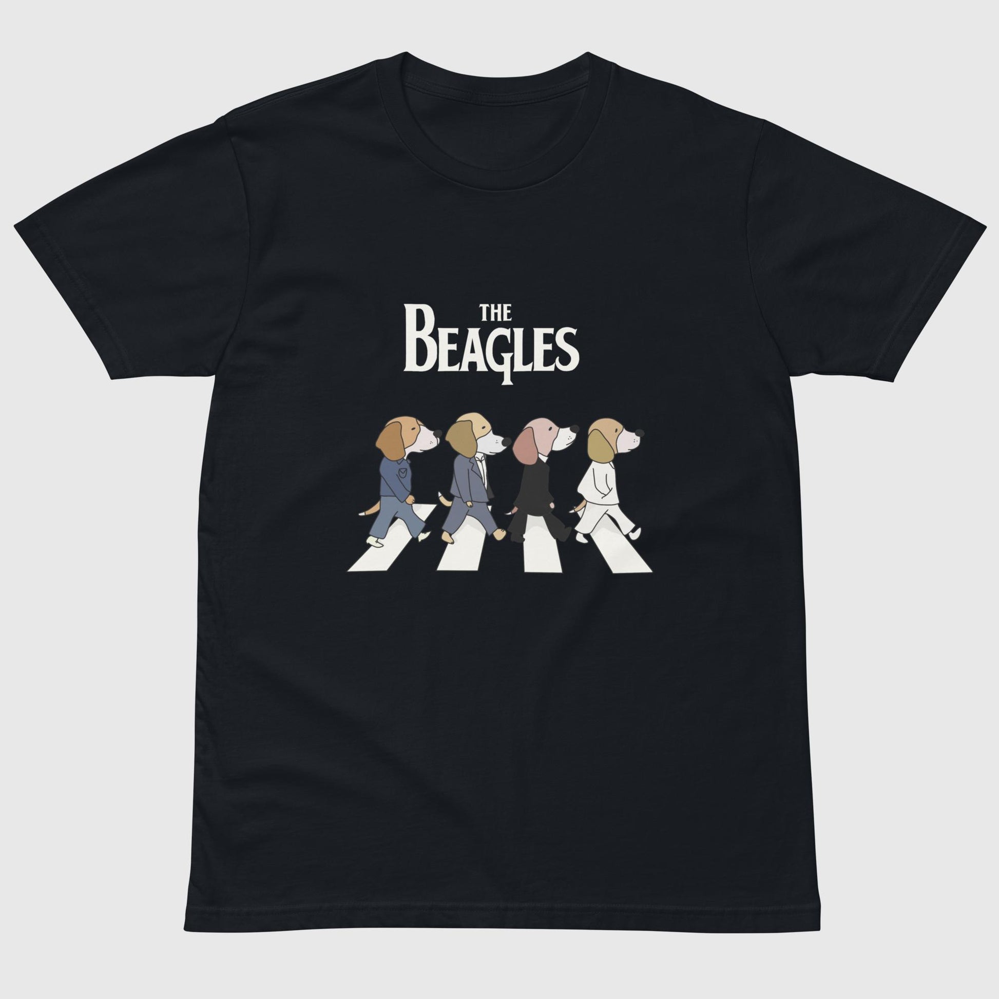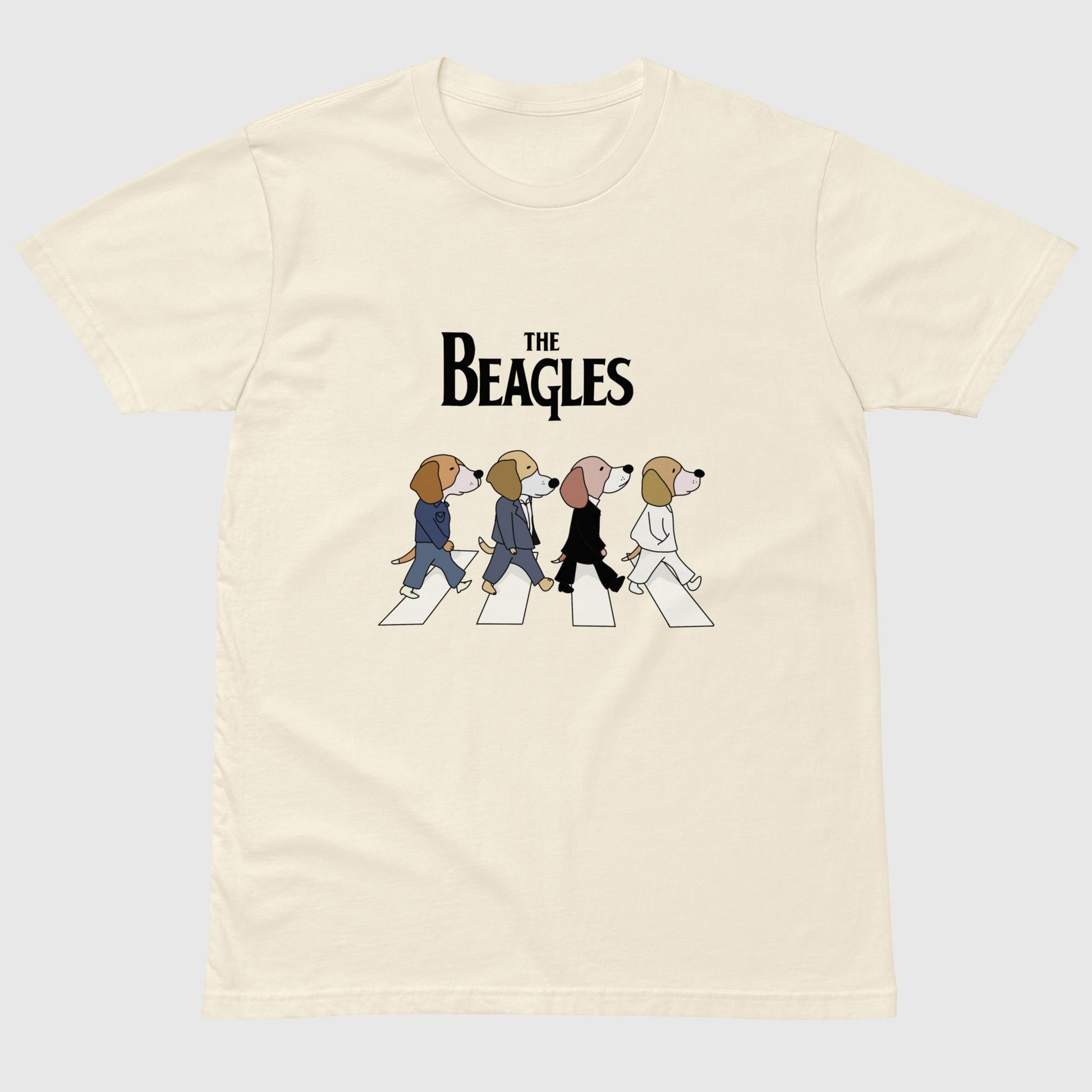 横断歩道を颯爽と歩く4匹のビーグル犬たちが印象的な、とってもキュートなTシャツです。「The Beagles」の文字とスタイリッシュに歩く犬たちのイラストが、見る人を思わず笑顔にさせてくれます。