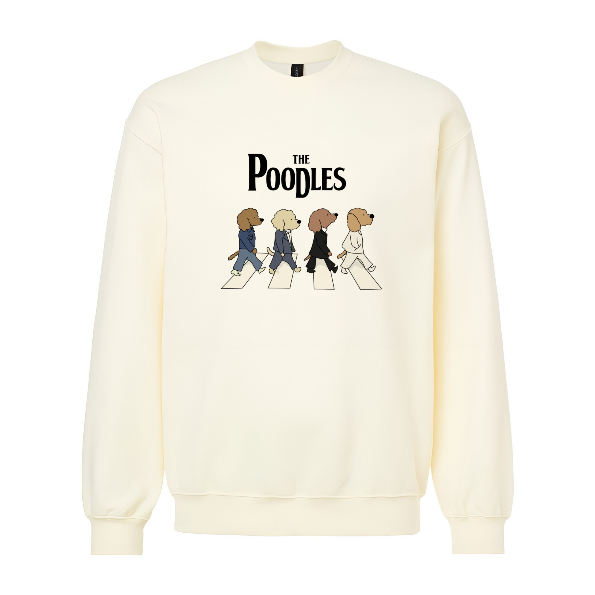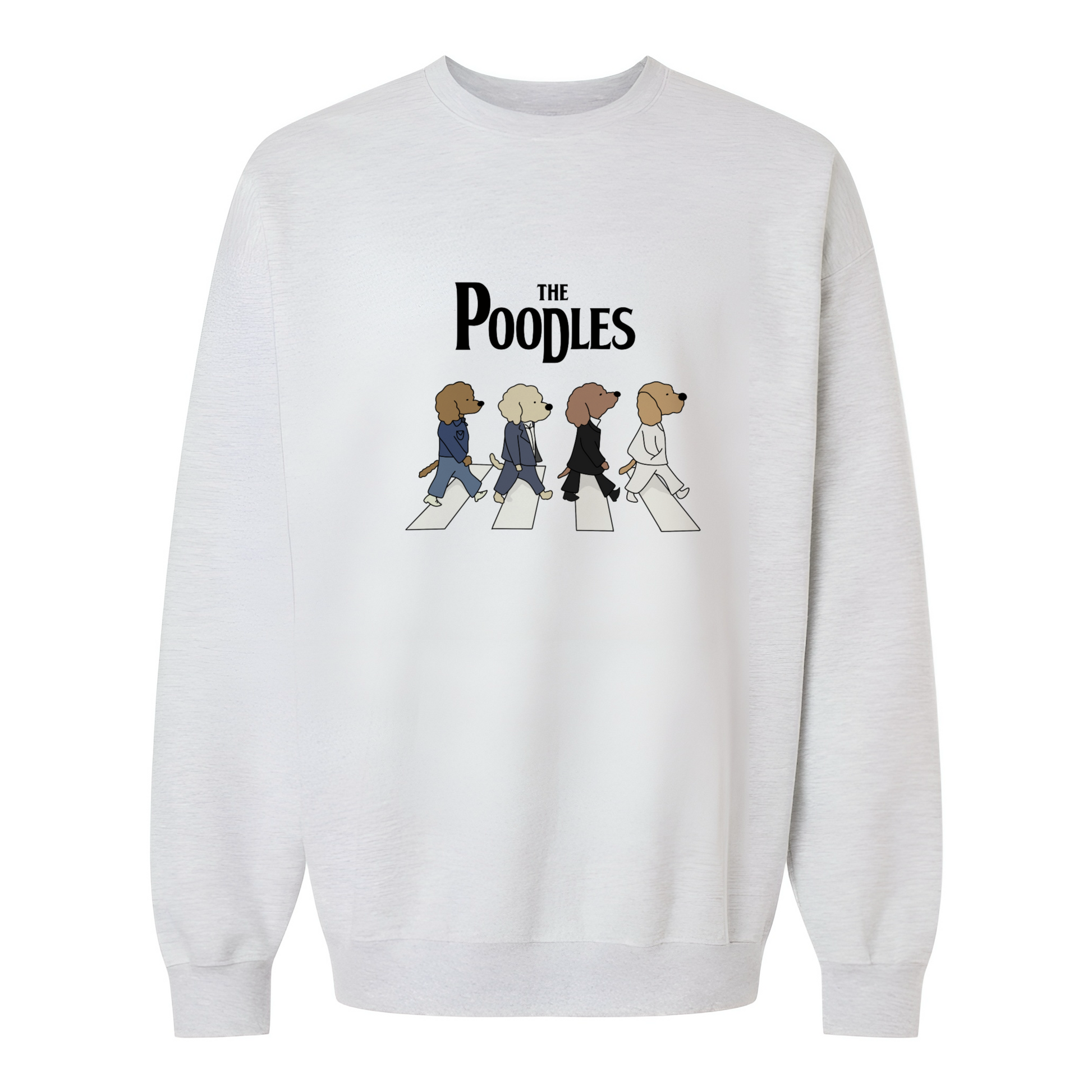横断歩道を颯爽と歩く4匹のプードル犬たちが印象的な、とってもキュートなトレーナーです。「The Poodles」の文字とスタイリッシュに歩く犬たちのイラストが、見る人を思わず笑顔にさせてくれます。